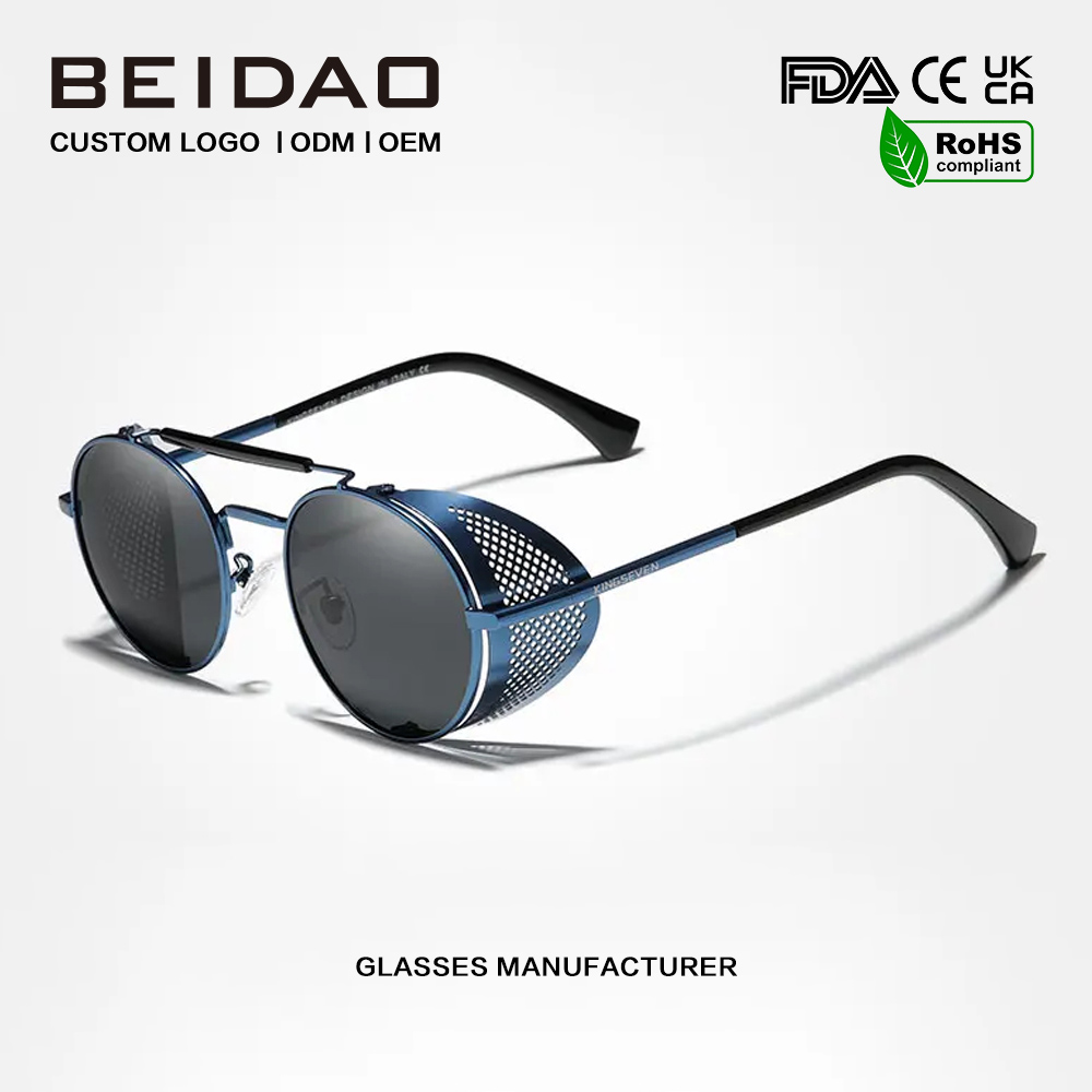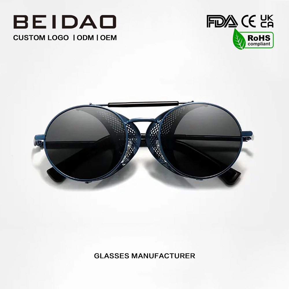 | Име на производ: | Сини Steampunk Aviator ретро очила за сонце од нерѓосувачки челик |