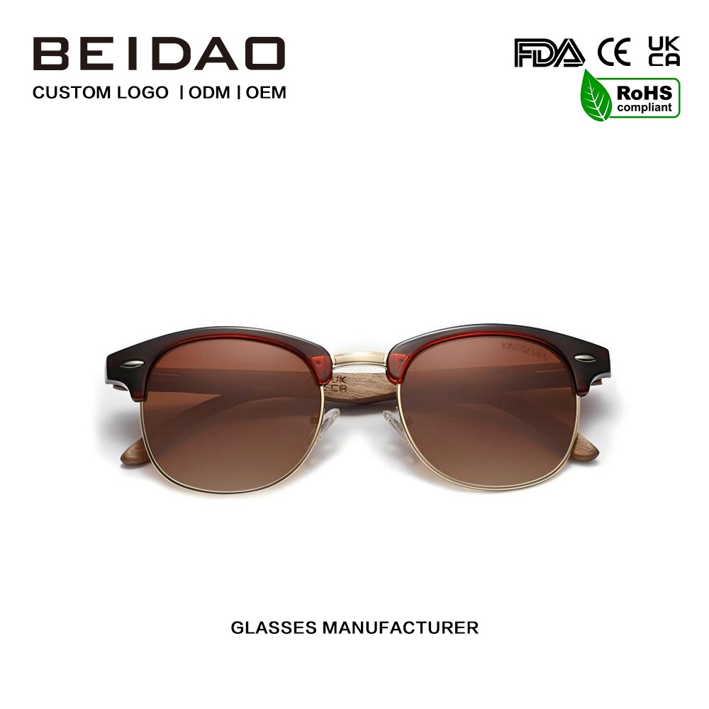 Очилата за сонце од дрво со граден кафеав поларизиран орев се направени од висококвалитетен метал и не се оштетуваат лесно.