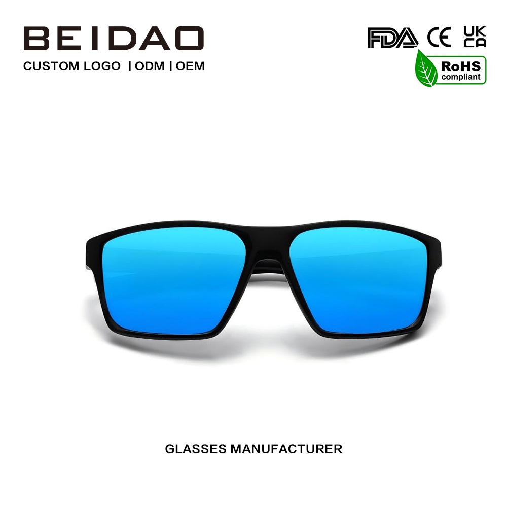 Дизајнерски сини поларизирани правоаголни очила за сонце на отворено за мажи